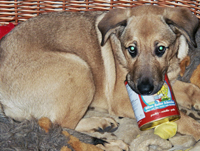 Im Alter von ½ Jahr bekam ich Gesellschaft von meinem heutigen Kumpel Wuschel, und stellt Euch vor, er frisst natürlich auch ANiFiT. Am Anfang habe ich immer probiert ihm das gute Futter streitig zu machen, schließlich war ich ja zu erst da, aber ich will mal nicht so sein, und gebe Ihm halt auch eine Dose ab.